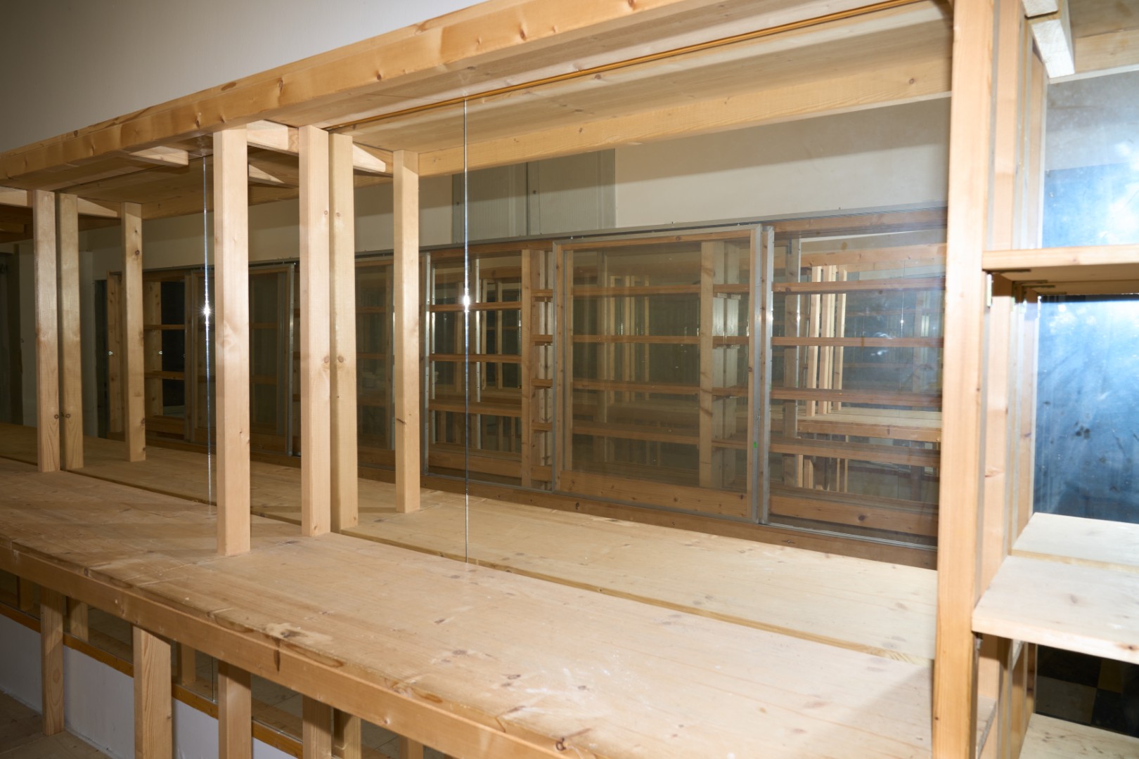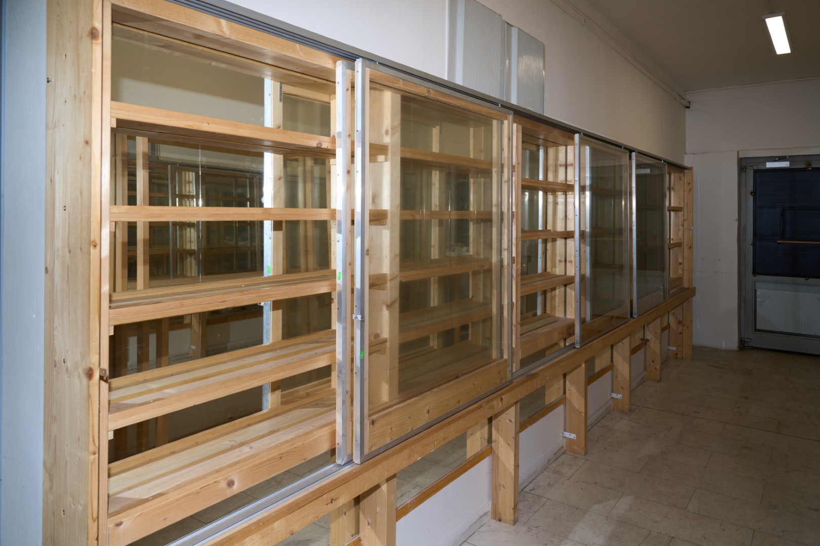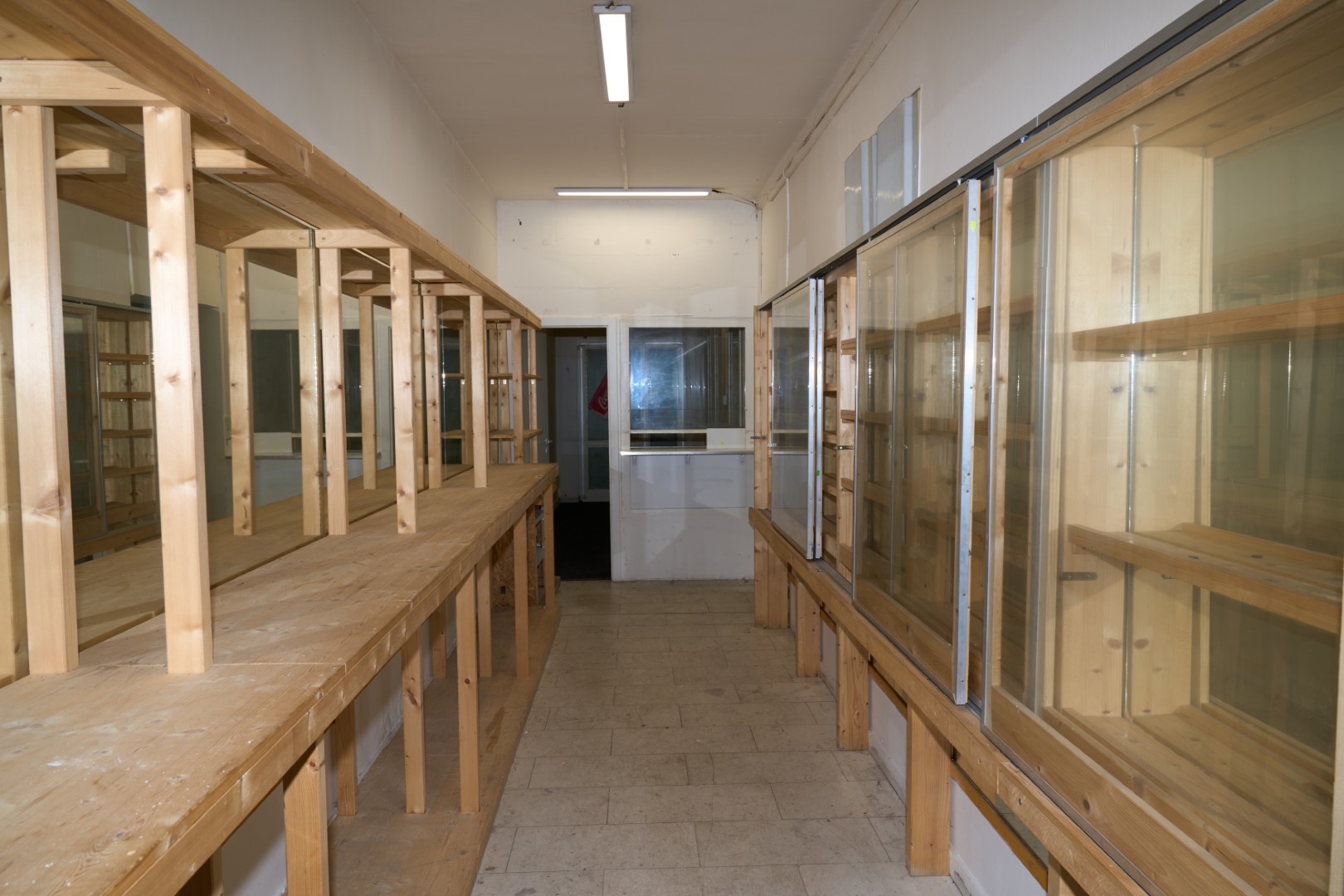 - S prosklenými vitrínami a regály